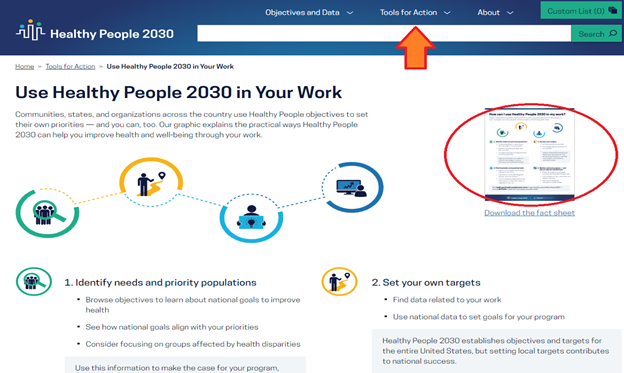 Explore Use Healthy People 2030 in your work. You may also