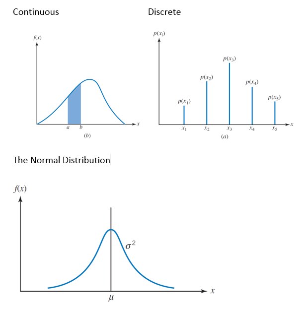 σ=√V(X) is called the standard deviation of the probability distribution. The standard deviation is a number which describes the spread of the distribution. Small standard deviation means small spread, large standard deviation means large spread.